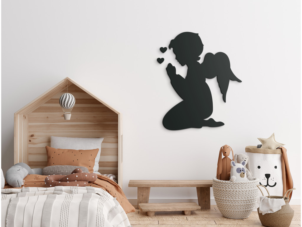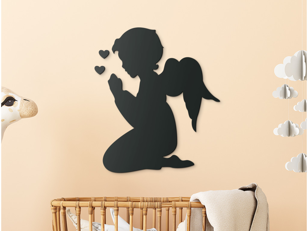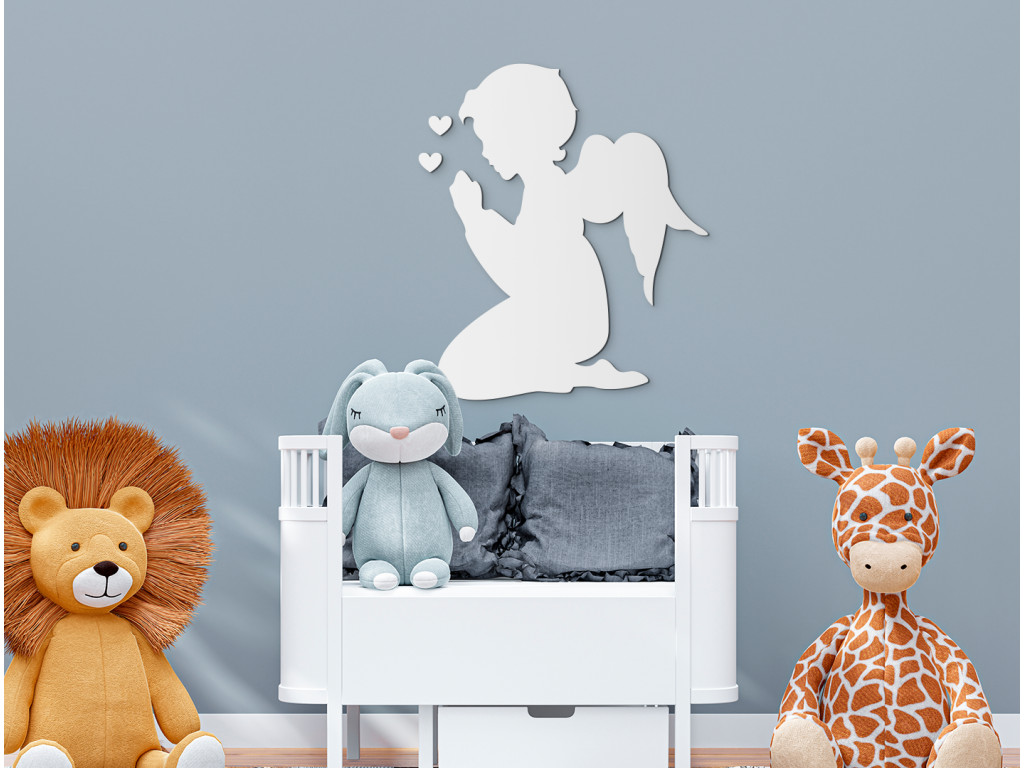 Originálny dizajn zobrazujúceho malého anjela strážneho, ktorý sa modlí. Nechajte nálepku anjela strážneho s modliacimi sa rukami prilákať do izbičky vašej malej hviezdičky pokoj a krásne sny.