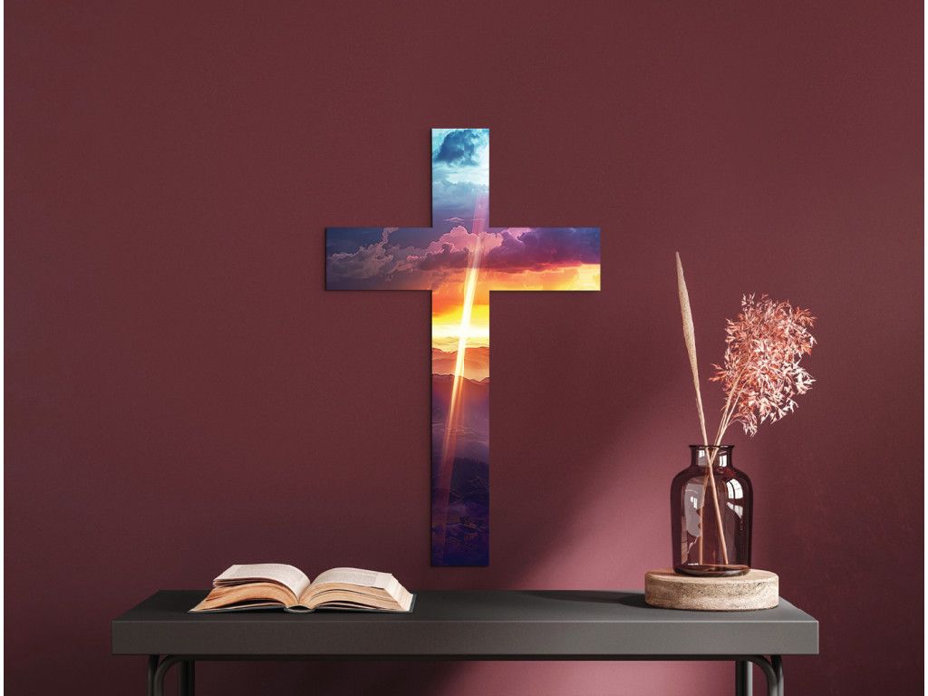 Le tableau représente la croix chrétienne – symbole central de la foi, de l'espoir et de la rédemption. La croix rappelle la crucifixion de Jésus-Christ, son sacrifice pour le salut de l'humanité et la victoire sur la mort. Dans la tradition chrétienne, elle revêt une signification profonde : elle est le signe de la souffrance et de la nouvelle vie, de la douleur et de l'espoir. Ce symbole est encore présent aujourd'hui dans les églises, sur les objets de prière et dans la vie quotidienne des croyants, comme un rappel constant de l'amour et de la miséricorde de Dieu.
