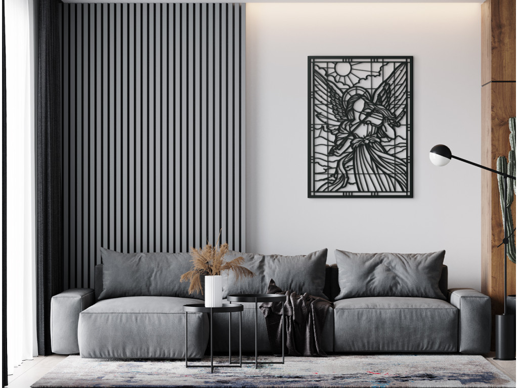 Vous aimez les décorations sur le thème des anges ? Celle-ci enrichira votre intérieur. L'ange gardien sera un symbole de protection dans chaque pièce. Le tableau en bois au design moderne convient pour le mur d'une chambre à coucher, d'un salon ou d'un couloir.