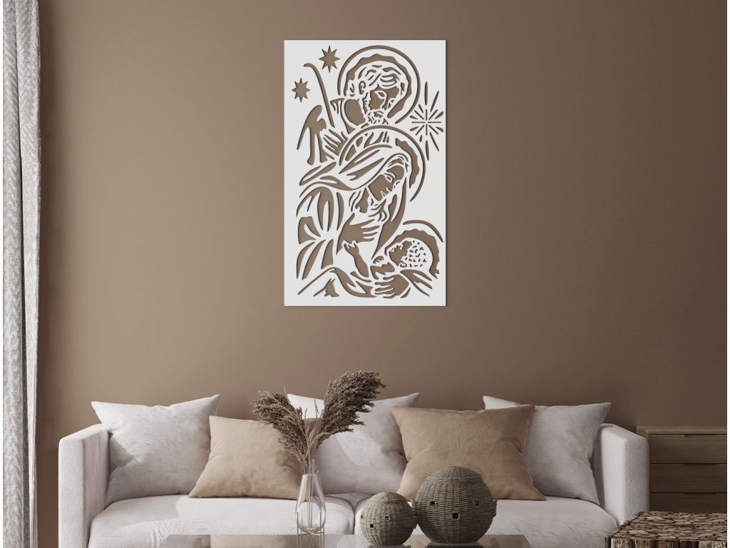 Betlehem krásne vyobrazuje narodenie Ježiška. Obraz s touto tematikou vyobrazuje aj jeho matku Máriu a Jozefa, ktorý sa na neho uprene dívajú. Drevený obraz Betlehema je vhodný na stenu do obývačky alebo spálne.