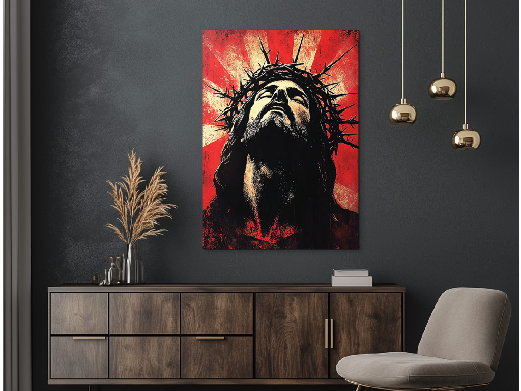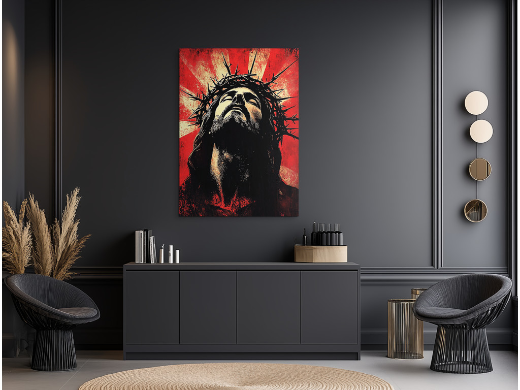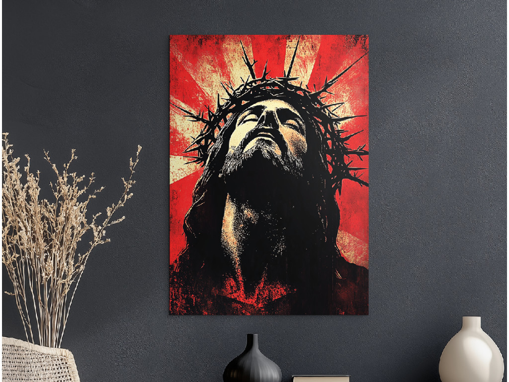 Le tableau représente le visage de Jésus-Christ, les yeux fermés, dans le dernier instant avant de rendre l'âme. Son expression est sereine, résignée et concentrée, la tête légèrement inclinée, exprimant ainsi son acceptation intérieure du sacrifice.