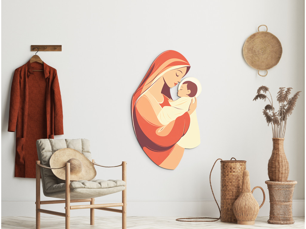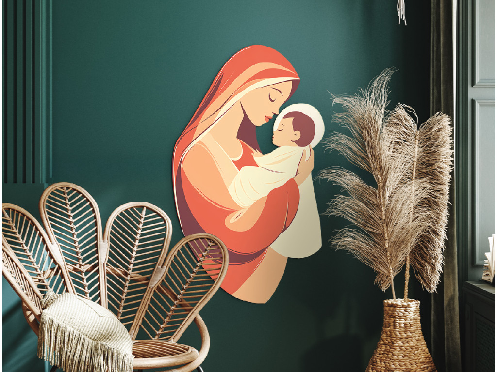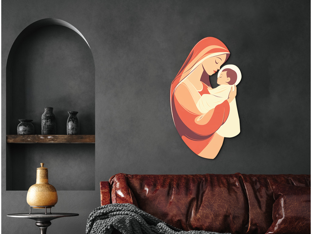 Le tableau représente la Vierge Marie tenant le petit Jésus – un motif intemporel connu sous le nom de Madone à l'Enfant, qui, depuis les premiers siècles de l'art chrétien, exprime l'amour, le dévouement et le lien spirituel profond entre la mère et le fils. Ce thème symbolise non seulement la tendresse maternelle, mais aussi l'humilité et la confiance totale en la volonté de Dieu. Comme l'a rappelé le pape François, Jésus précède Marie – il la guide, et à travers elle, nous aussi – sur le chemin de la foi, de l'amour et du sacrifice.