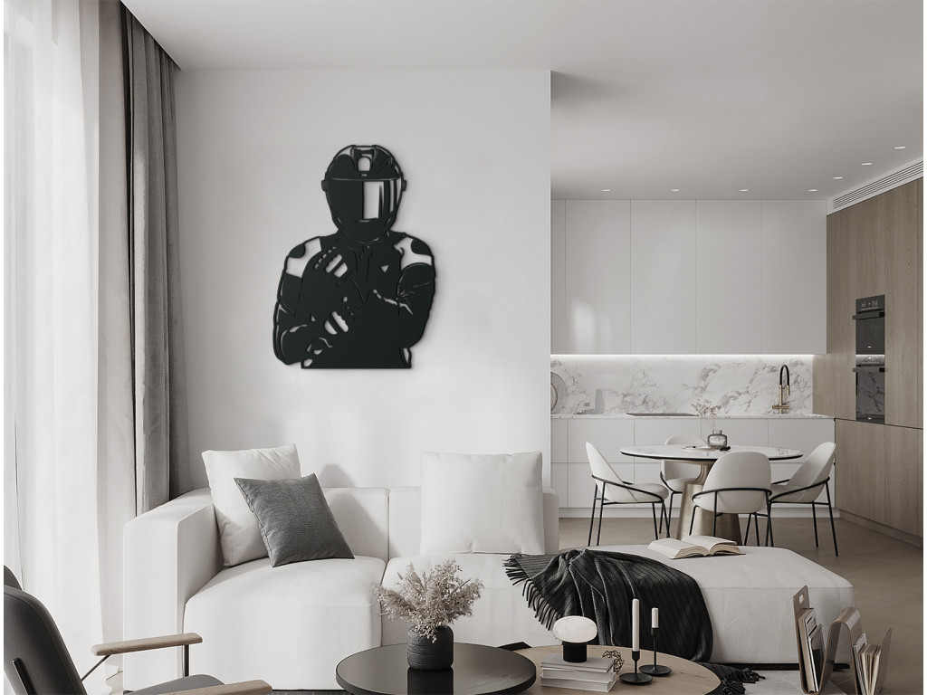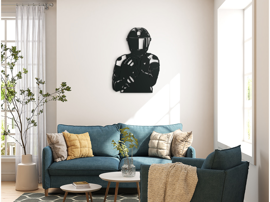 Vous êtes amateur de motos ? Alors cette décoration en bois représentant un motard ne passera pas inaperçue. Elle apportera une touche originale à votre mur et constitue également un excellent cadeau pour les passionnés de ce type de véhicule.