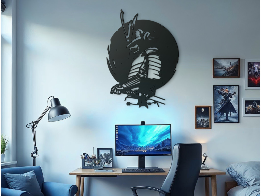 L'autocollant mural rond Guerrier apporte force et courage à votre espace. Les lignes élégantes et les détails saisissants du guerrier représenté créent un look impressionnant et inspirant. Idéal pour créer une touche dynamique dans un bureau, une salle de jeux ou un salon.