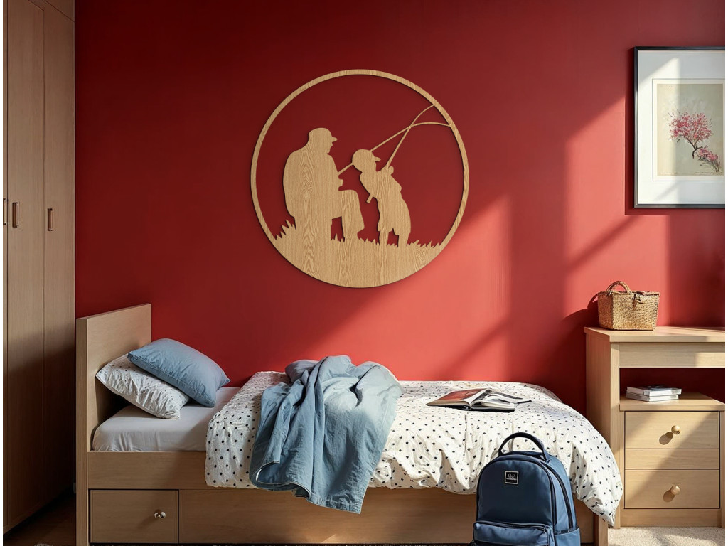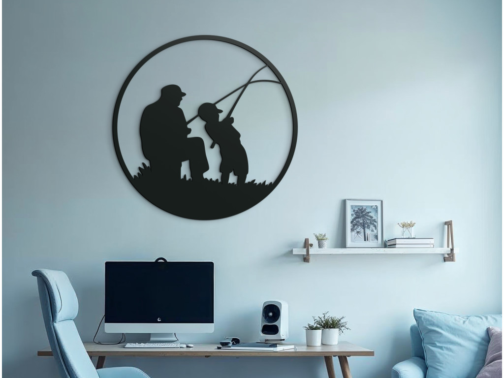 Nálepka Rybačka zobrazuje klasickú scénu rybára otca, ktorý vzal na ryby svojho syna, zachytenú v okrúhlej kompozícii, ktorá symbolizuje rodinné puto a pokojné chvíle strávené pri vode. Vďaka kvalitným materiálom a jednoduchému aplikačnému procesu je ľahko prispôsobiteľná rôznym povrchom a štýlom interiéru. Je perfektným doplnkom pre všetkých, ktorí oceňujú spojenie s prírodou a chcú svojmu domovu alebo pracovisku priniesť kúsok relaxačnej atmosféry a estetickej harmónie.