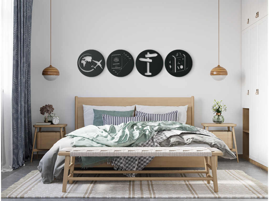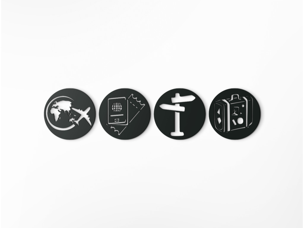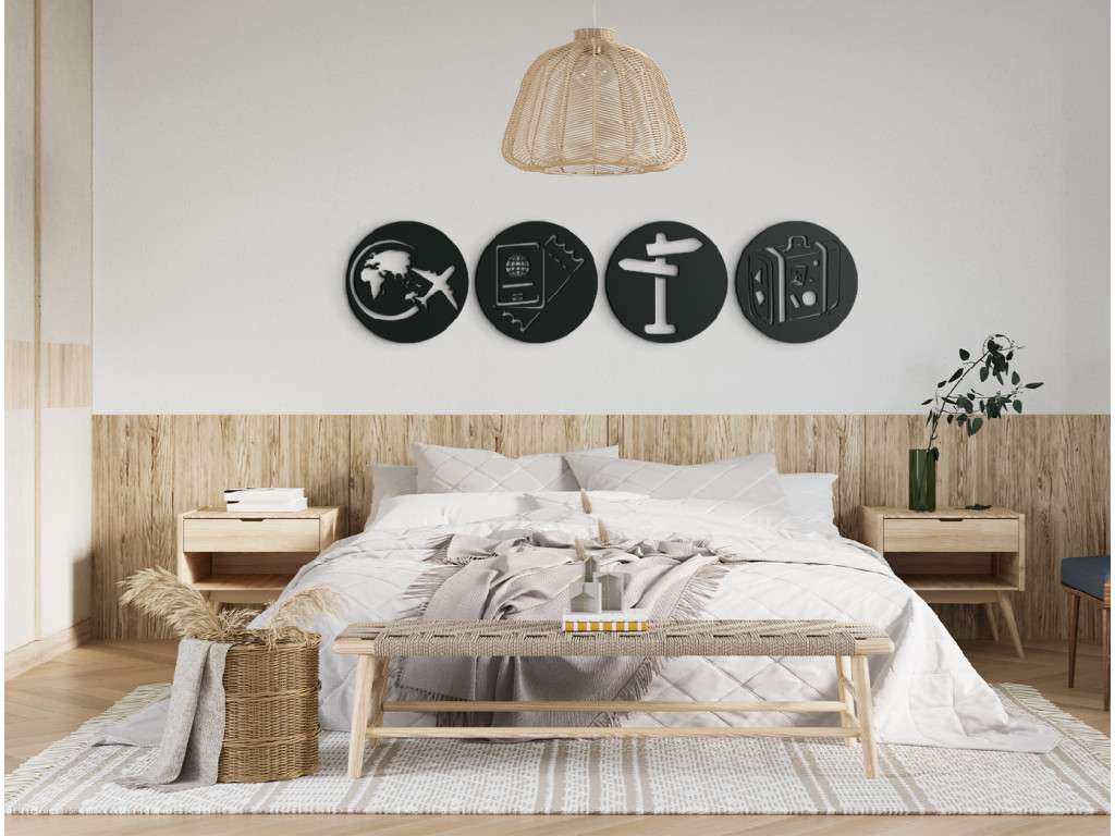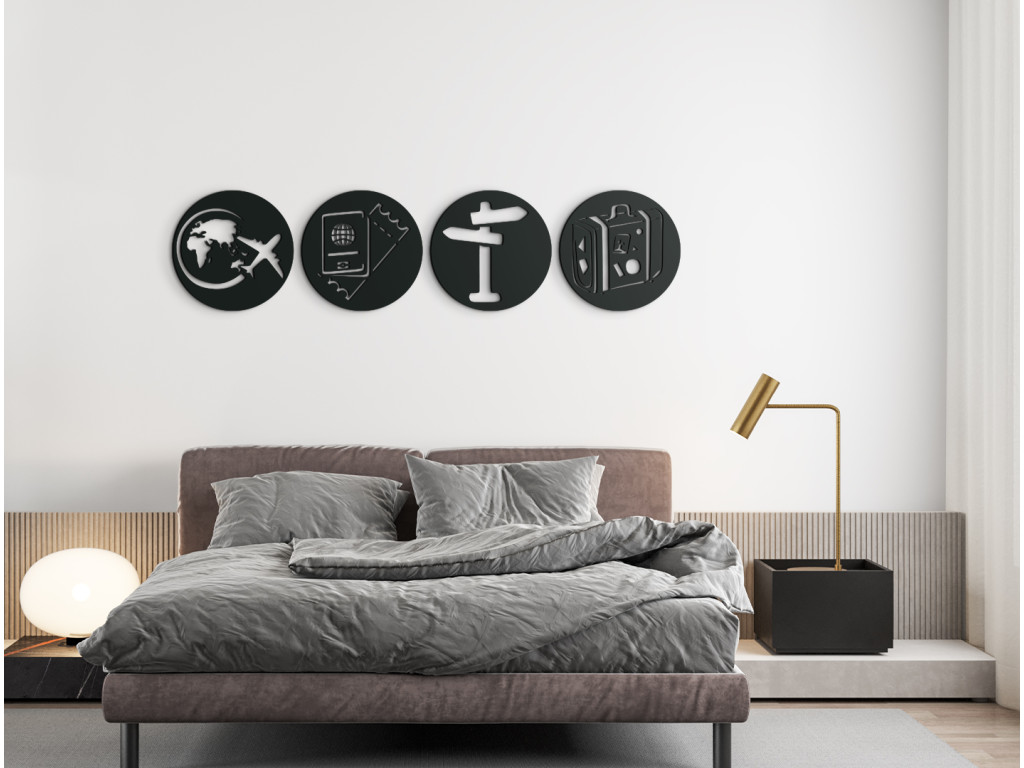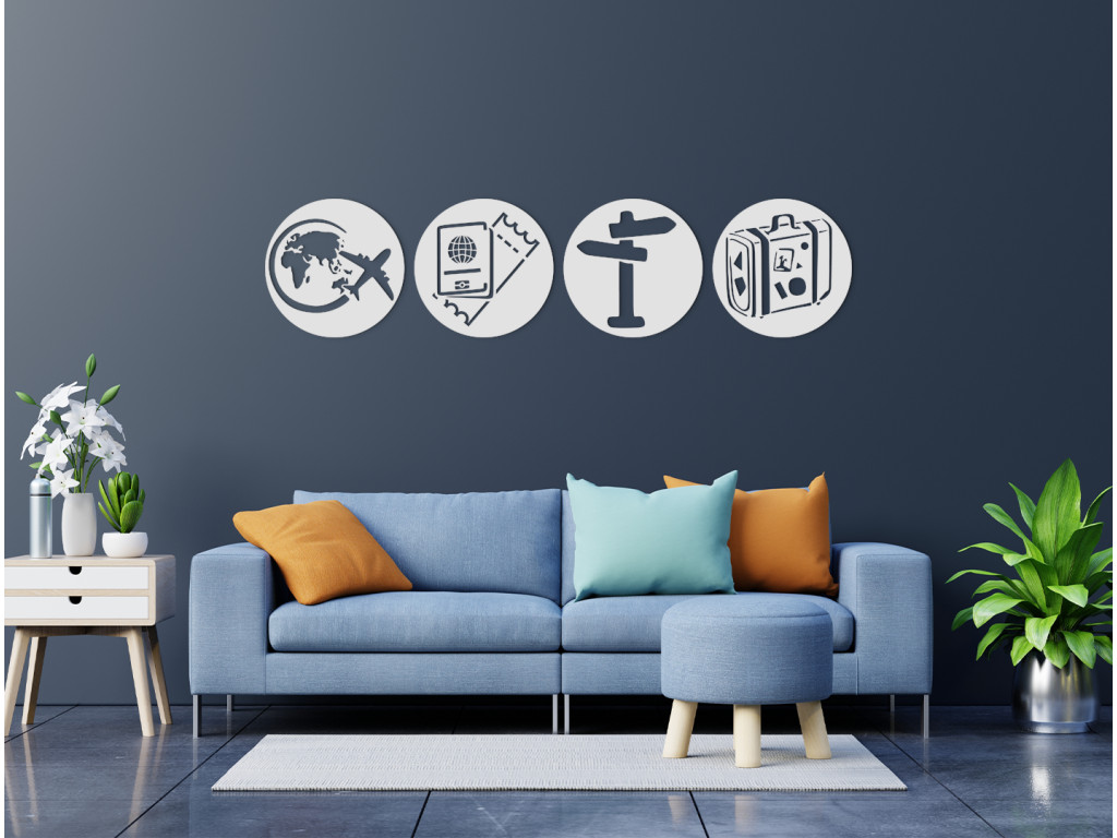 Ste vášnivý cestovateľ? Potom vám týmto viacdielnym obrazom ulahodíme. Vyrezávaný obraz s motívmi cestovania zapadne do každého moderného interiéru. Skladá sa zo 4 dielov, na ktorých sú vyobrazené symboly ako lietadlo, lístky, smerujúce šípky či cestovateľský kufor.
