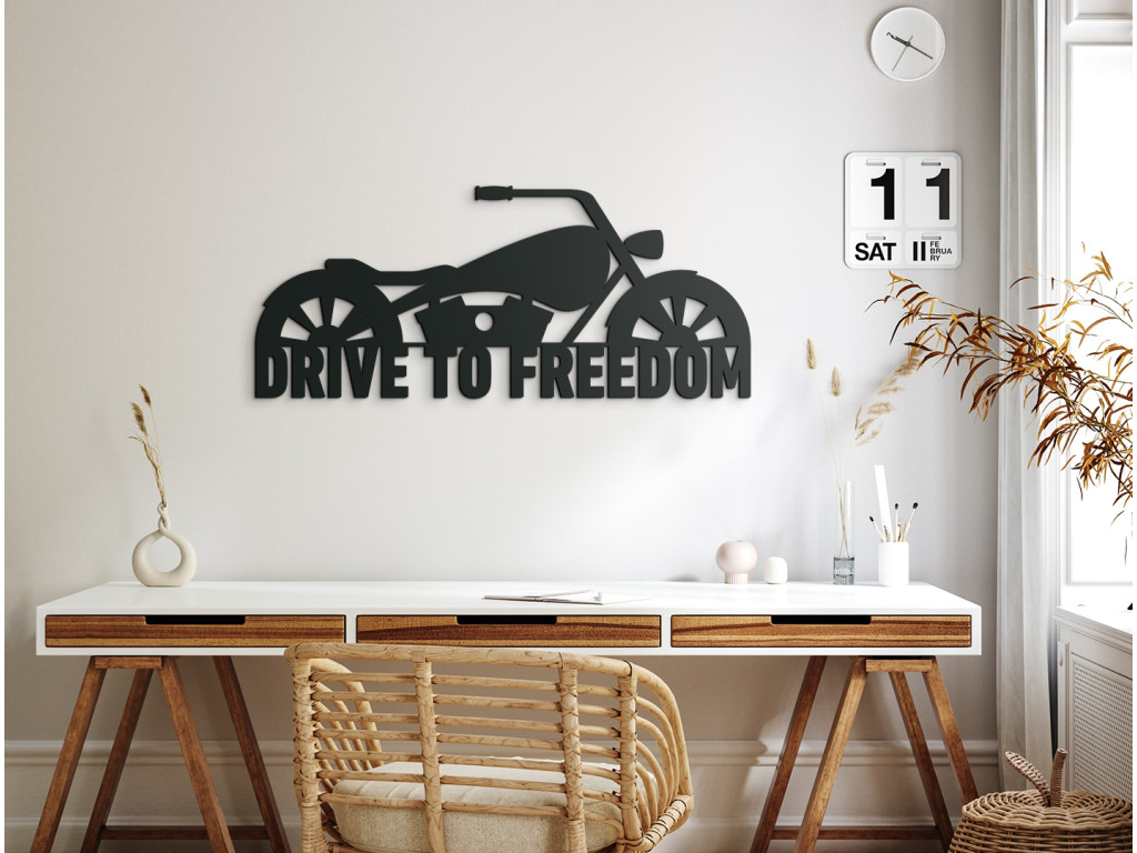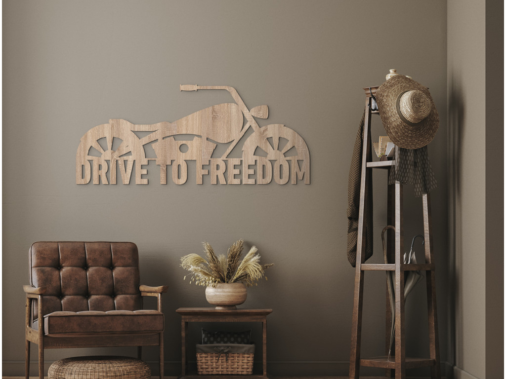 Nápis "Drive to freedom", čo znamená v preklade "Cesta za slobodou", symbolizuje vášeň k motocyklom a horiacu túžbu človeka po slobode a dobrodružstve. Tento obraz bude nie len krásnou dekoráciou, ale aj spomienkou na všetky zažité dobrodružstvá na vašom motocykli.