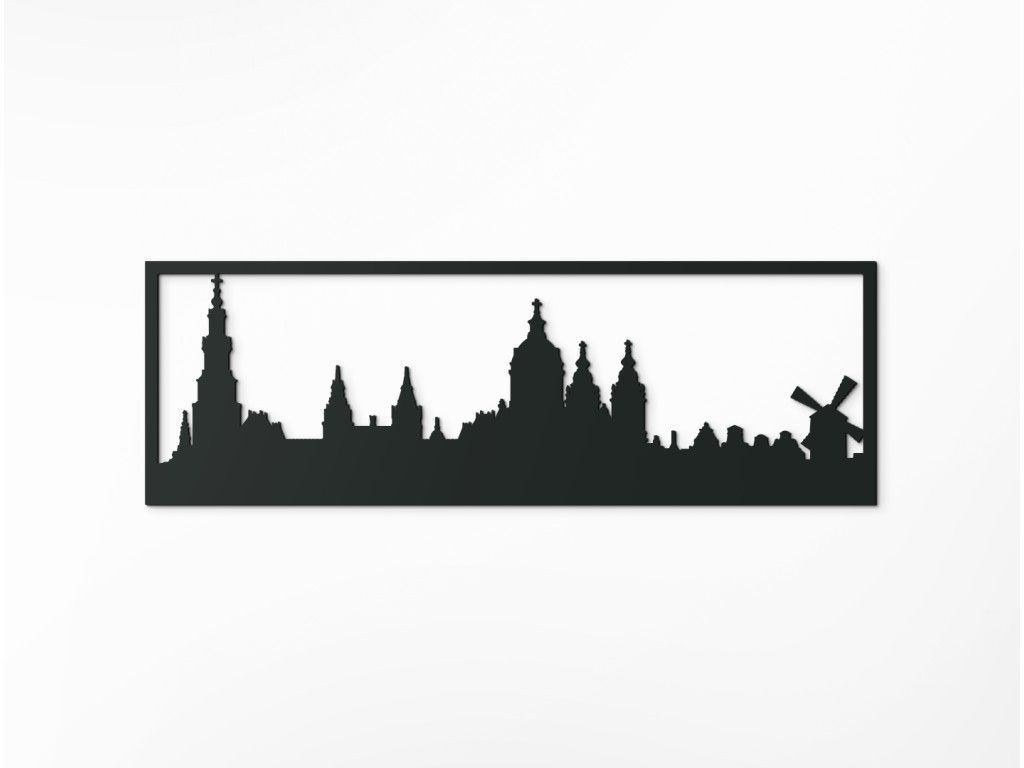 Zaradiť medzi ne určite môžeme (zľava) protestantský kostol Westerkerk na Kruiskade v renesančnom štýle zo 17. storočia a budovu najvýznamnejšieho národného múzea Rijksmuseum založeného v roku 1798 až s miliónom umeleckých diel a rozsiahlou knižnicou. Stred obrazu vypĺňa majestátna katedrála Basiliek van de Heilige Nicolaas (Bazilika svätého Mikuláša), ktorá je rímsko-katolíckym kostolom v novobarokovom slohu. Panoráma pokračuje radom vysokých historických domčekov z najnavštevovanejšej štvrte Begijnhof, ktorá bola v minulosti súčasťou komplexu mníšskeho rádu a končí typickým veterným mlynom.