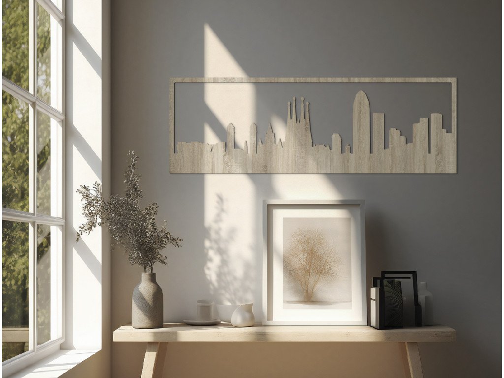 Vamos a la playa! Okrem pláží však určite zavítajte aj do centra mesta. Či už vás fascinuje história, umenie alebo futbal a tím FC Barcelona, mesto pod kopcom Tibidabo ponúka hneď niekoľko zákutí, ktoré sa oplatí vidieť. My sme niekoľko z tých najobľúbenejších združili do jedného rámu a vytvorili drevený obraz Barcelona, ktorý sa vďaka svojej panoramatickej šírke dokonale hodí na vyplnenie voľného priestoru na stene nad gaučom, TV, posteľou či na dlhej chodbe.