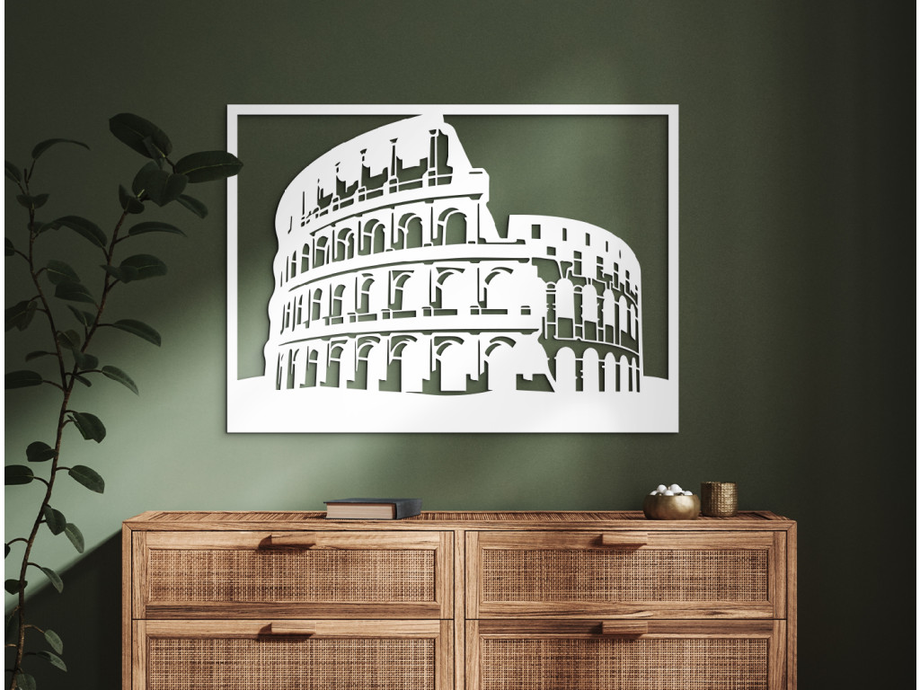 Icône de l’Empire romain et lieu de spectacles dramatiques, d’exécutions, de combats de gladiateurs et de luttes avec des animaux sauvages. Heureusement, l’amphithéâtre au centre de Rome est aujourd’hui un endroit beaucoup plus calme, mais la vue de ses ruines majestueuses reste à couper le souffle. C’est précisément la partie la mieux conservée qui est représentée sur notre tableau en bois Colisée, en 3 dimensions et 8 couleurs, afin que vous puissiez admirer chaque jour ce monument antique italien.