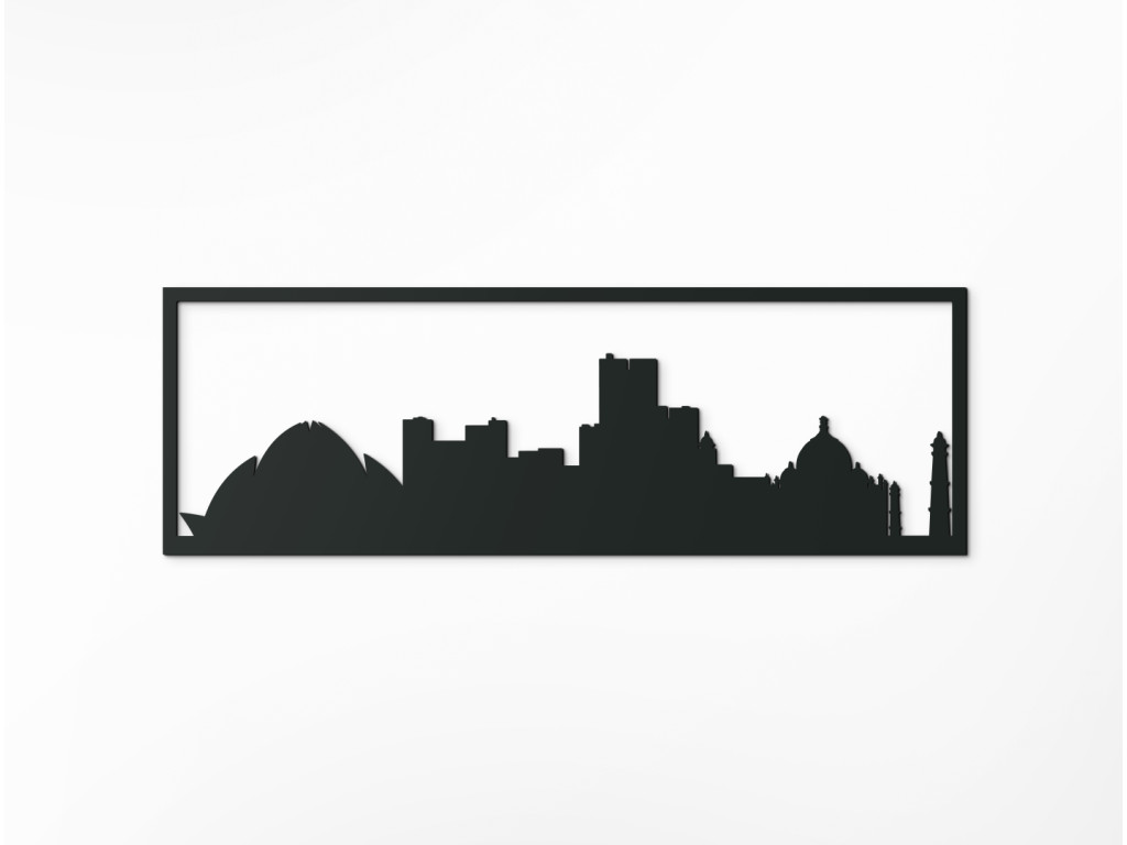 Nechýba v nej skyline súčasných budov, ale aj slávna bahájska svätyňa Lotusový chrám s kvetnatou konštrukciou pripomínajúcou budovu opery v Sydney a hinduistický chrám Swaminarayan Akshardham zároveň symbolizujúci Tádž Mahal v Ágre, ktorý je súčasťou UNESCO. K svetovému dedičstvu patrí aj historický a najvyšší indický minaret Kutub Mínár z červeného pieskovca, ktorý ukončuje obraz z pravej strany. V jednom panoramatickom ráme tak spájame skvosty v 3 rozmeroch a 8 prírodných odtieňoch.