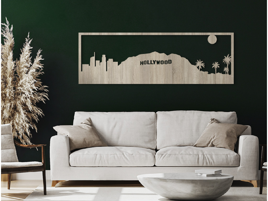 Či už o návšteve Chodníka slávy, Rodeo Drive, Sunset Boulevard, Venice Beach, koncertnej haly Walt Disney Concert Hall, športovej a multifunkčnej arény Staples Center, radnice Townhall, múzea LACMA, zábavného Pacific Parku a filmových štúdií Universal či Warner Bros. Studios len snívate, alebo ste svoje cestovateľské plány už stihli uskutočniť, náš drevený obraz Los Angeles pre vás zachytáva originálnu panorámu tých najkrajších zákutí. Dekorácia tak to najžiarivejšie z hviezdneho L.A. spája do jedného rámu, ktorý sa dokonale hodí na vyplnenie voľného priestoru na stene nad gaučom, TV, posteľou, v kancelárii či na dlhej chodbe.