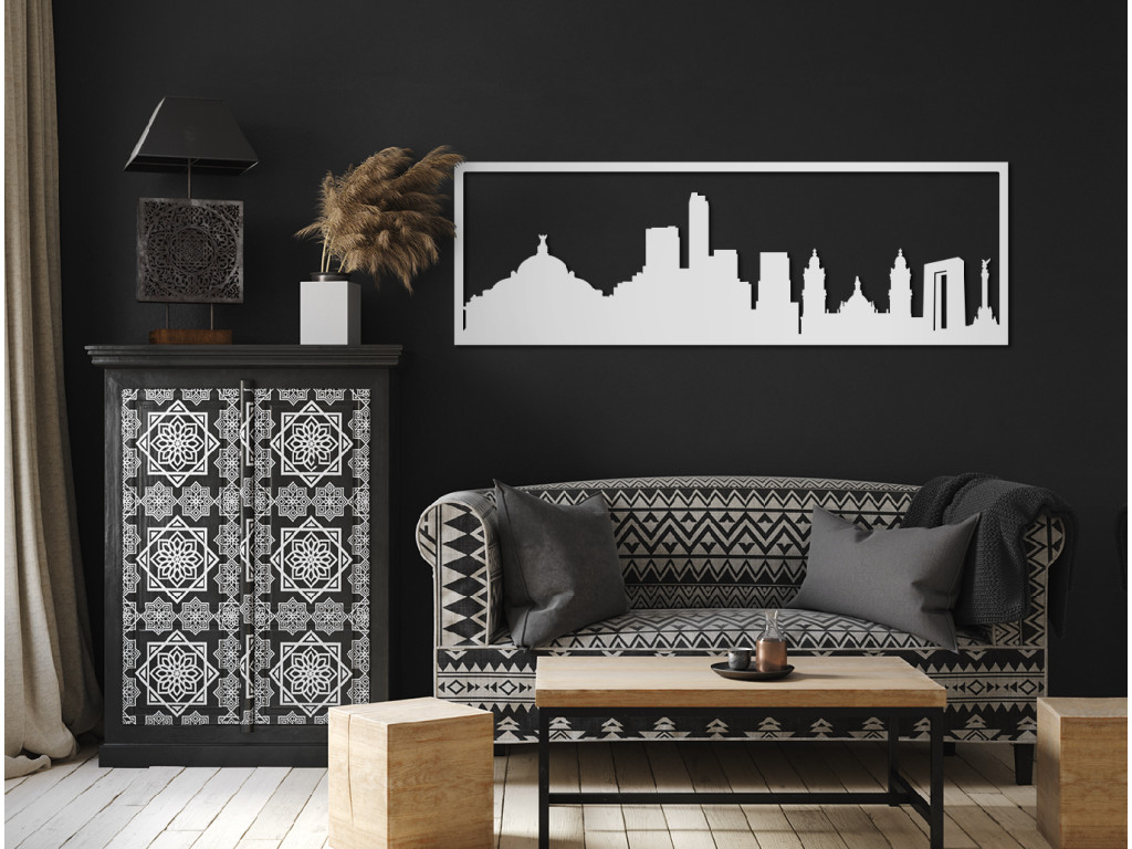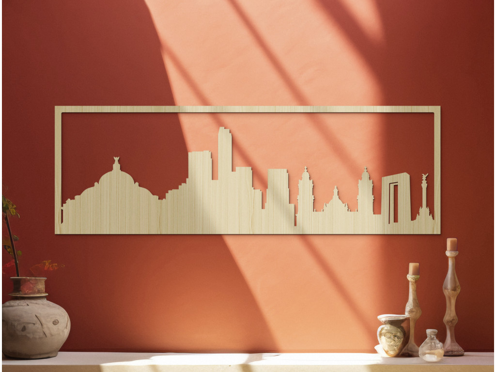 Ak ste už Mexiko navštívili, niektré zo siluet dekorácie vám sú dobre známe. Či ste svoje cestovateľské plány stihli uskutočniť, alebo o výlete do Latinskej Ameriky iba snívate, náš drevený obraz Mexiko pre vás zachytáva originálnu panorámu mesta. Za výhľadom na Palacio de Bellas Artes, katedrálu Nanebovzatia Panny Márie Catedral Metropolitana, pamätník nezávislosti El ángel de la Independencia či mrakodrapy a Torres Arcos Bosques tak nebudete musieť lietať, ale bude vás tešiť u vás doma. Dekorácia sa vďaka svojej panoramatickej šírke dokonale hodí na vyplnenie voľného priestoru nad gaučom, TV, posteľou, v kancelárii či chodbe.