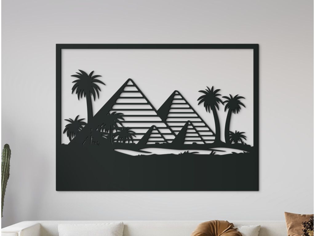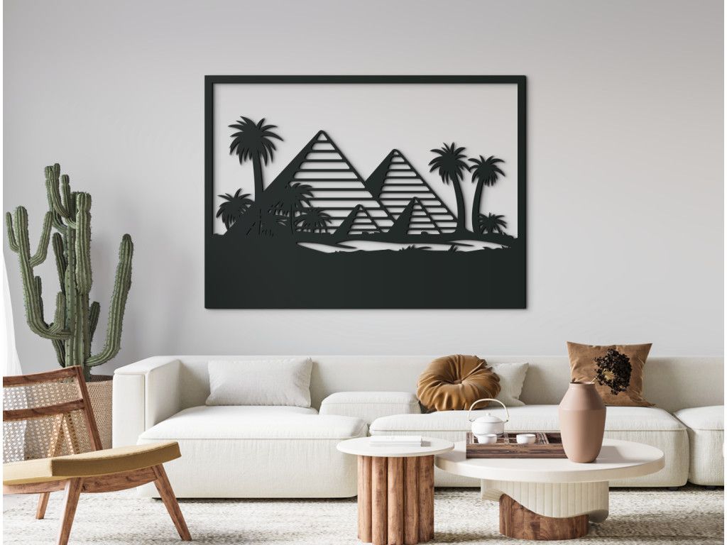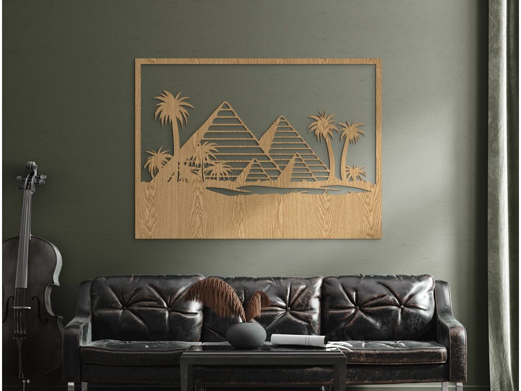 Či už o návšteve 4 tisícročia starých pyramíd len snívate, alebo ste svoje cestovateľské plány už stihli uskutočniť, náš drevený obraz Pyramídy v Gíze ich pre vás zachytáva hneď niekoľko. Pre dovolenkovú atmosféru sme do dizajnu doplnili aj vysoké palmy a duny piesku, vďaka ktorým sa jedným pohľadom na stenu prenesiete naspäť do faraónskeho Egypta.