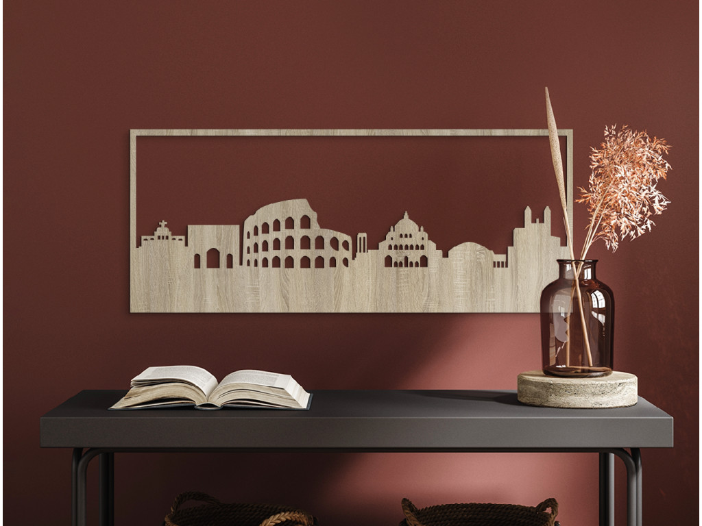 Dejiny jednej z najväčších metropol Európy siahajú až 2 800 rokov dozadu. Nečudo, že je plná historických stavieb, kultúrnych pamiatok a atrakcií. Sídlo starovekého Ríma, pápežských štátov, Talianskeho kráľovstva aj republiky ich ponúka naozaj dosť, a my sme sa pokúsili vybrať tie najznámejšie. Či už o ich návšteve len snívate, alebo ste svoje cestovateľské plány už stihli uskutočniť a navštívili ich osobne, náš drevený obraz Rím pre vás zachytáva originálnu panorámu tých najkrajších miest.