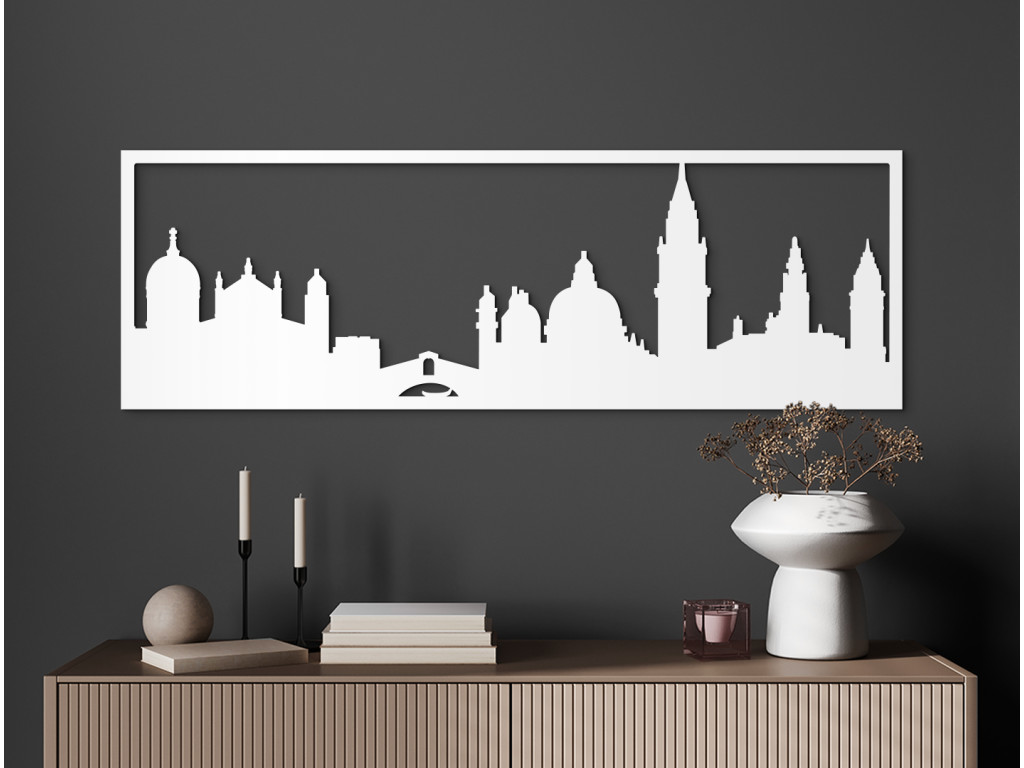 Hlavné mesto regiónu Benátsko na severe Talianska ponúka na obdiv historických pamiatok a atrakcií naozaj dosť. Či už o ich návšteve len snívate, alebo ste svoje cestovateľské plány už stihli uskutočniť, náš drevený obraz Benátky pre vás zachytáva originálnu panorámu tých najzaujímavejších. Patrí tu známy krytý kamenný most z 12. storočia Ponte di Rialto nad kanálom Canal Grando, veža so zvonicou Kampanila (Campanile di San Marco) na námestí Piazza San Marco, s majestátnym chrámom Bazilika svätého Marka (Basilica di San Marco), či gotický kostol Basilica di Santa Maria Gloriosa dei Frari v štvrti San Polo a mnoho ďalších, ktoré sa určite oplatí vidieť na vlastné oči. Dekorácia sa vďaka svojej panoramatickej šírke dokonale hodí na vyplnenie voľného priestoru na stene nad gaučom, TV, posteľou či na dlhej chodbe.